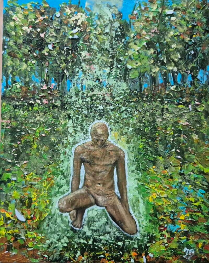 Looking Further 50x40 mixed media. Inclusief zwarte lijst. Sold