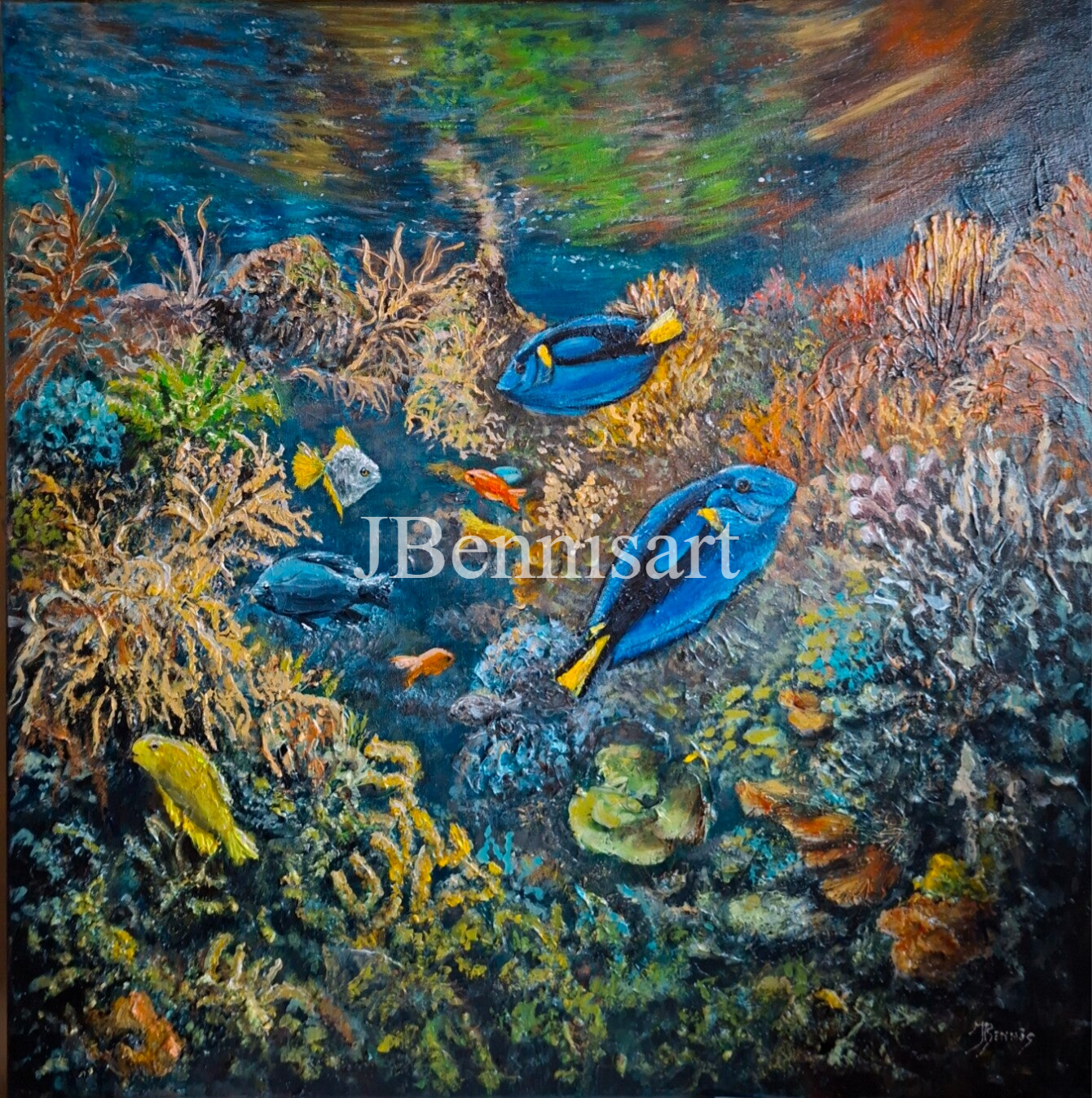 Aquarium. Acryl en mix media op linnen 70x70. Te Koop!