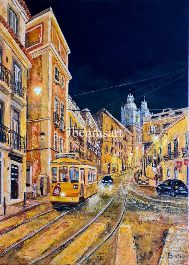 Lissabon, 70x50 olie op doek. Naar een foto van Kim Driessen. Te koop!