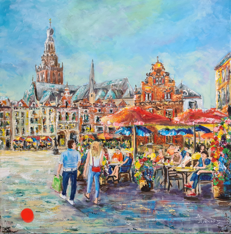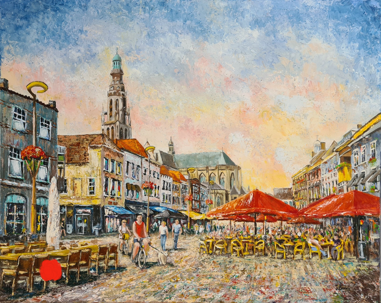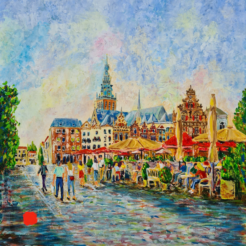 Breda, Grote Markt. Acryl op doek 80x100. Naar een foto van M. Vreugde. VERKOCHT!