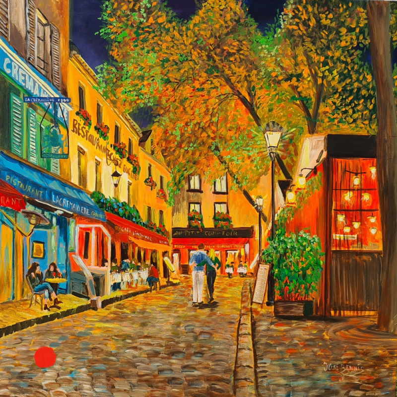 Parijs. Place du tertre. Olie op doek 20x20 inclusief zwarte baklijst. Te koop!