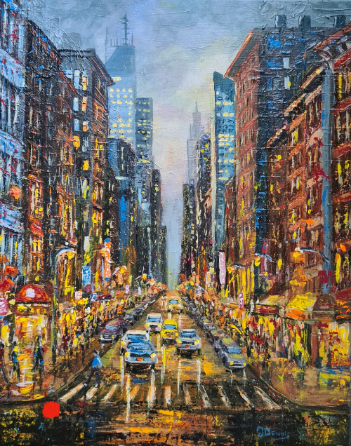 Paintings of City-scapes I usual create using a palette knife. Oil paint or acrylic paint.